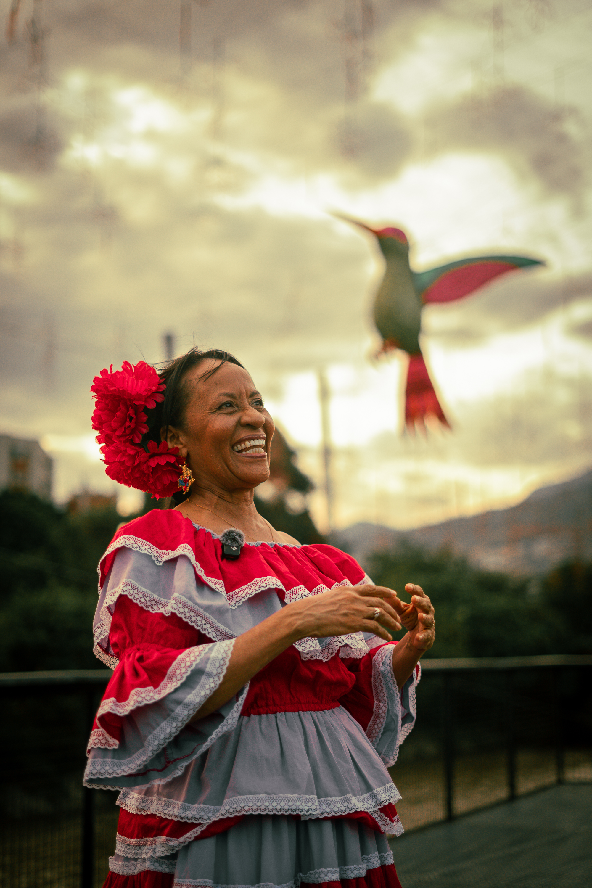 Capturar la esencia de una de las voces más icónicas de Colombia durante una jornada intensiva en Medellín. El objetivo era generar un banco de contenido que conectara su legado cultural con las audiencias digitales actuales, sin perder la autenticidad que la caracteriza.02. La Solución